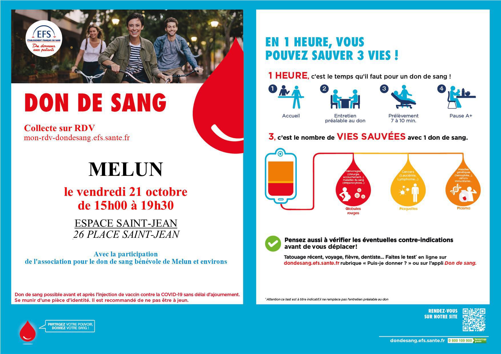 Une collecte est organisée de 15h00 à 19h30 à l'espace Saint-Jean à Melun.