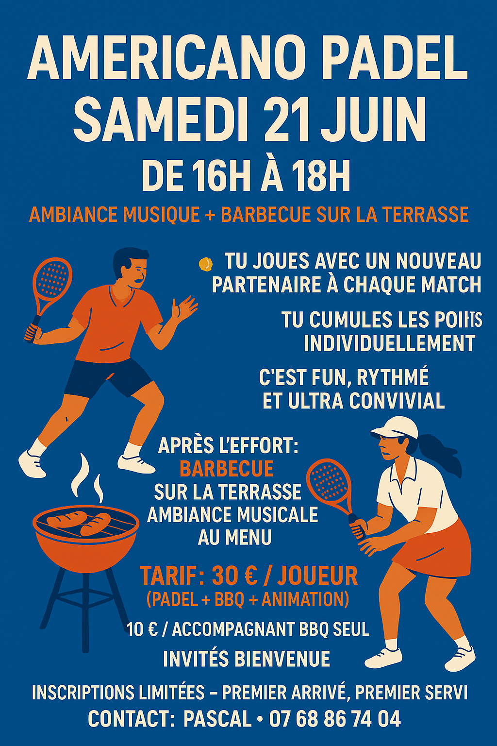 💰 30 € / joueur (padel + BBQ + animation)